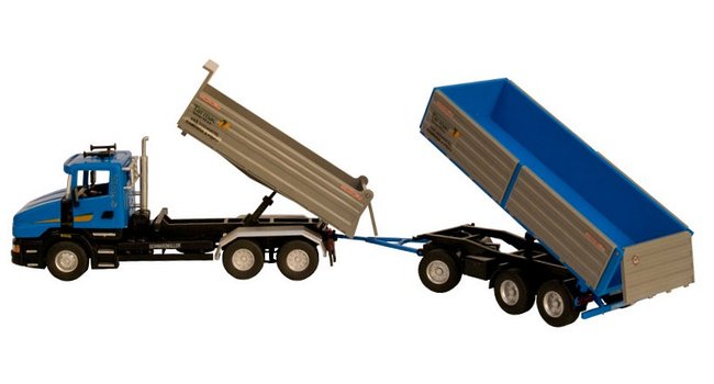 Model Monti System MS č.65 - Scania Tarmac je sklápěč Scania s přívěsem. Scania Monti System MS 65 v měřítku 1:35 patří do řady modelů Monti System PROFI,